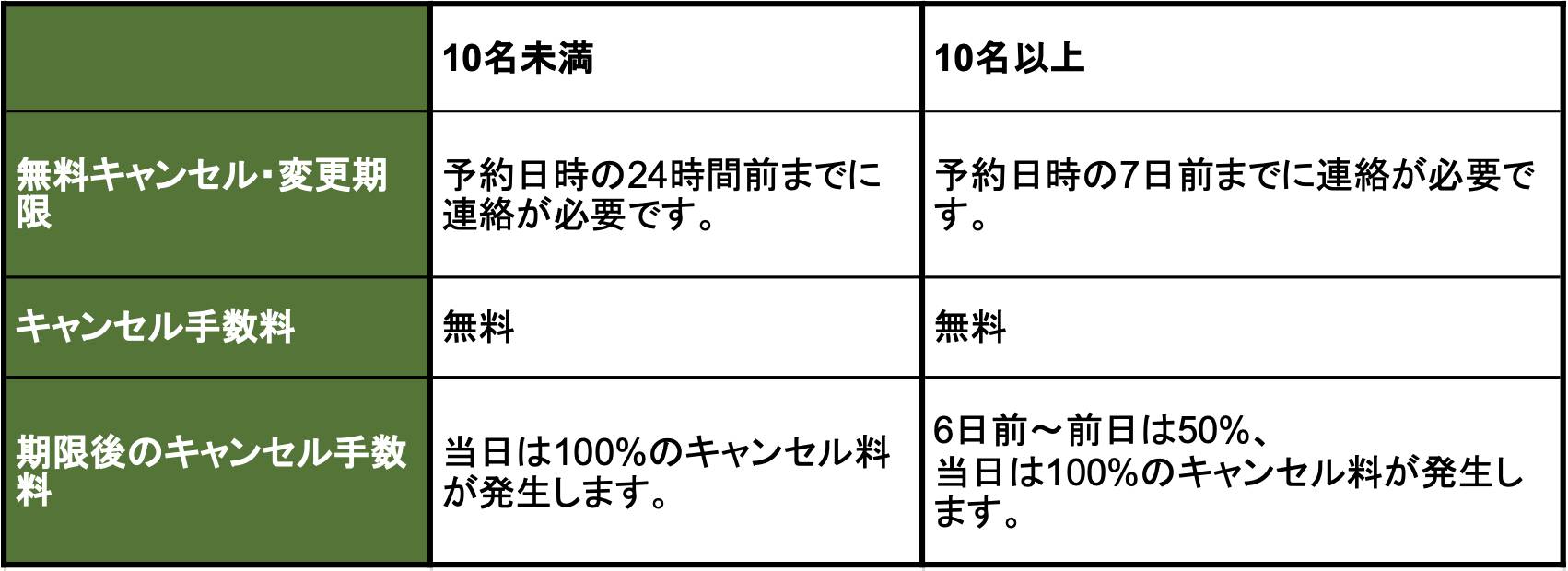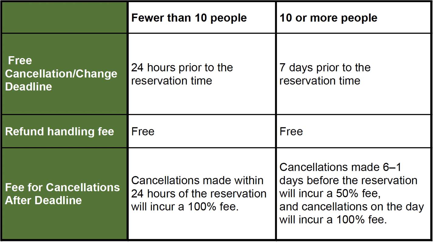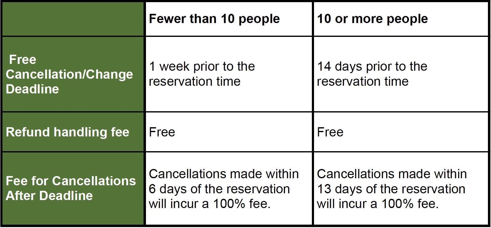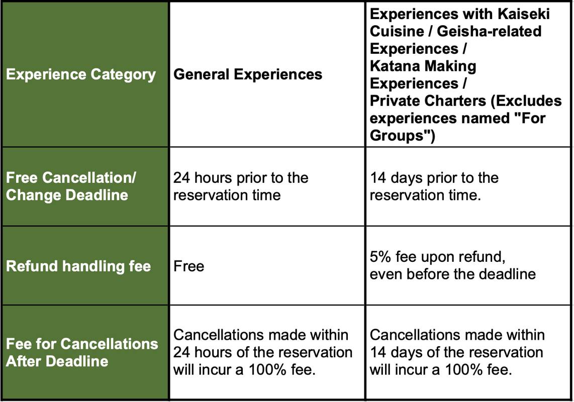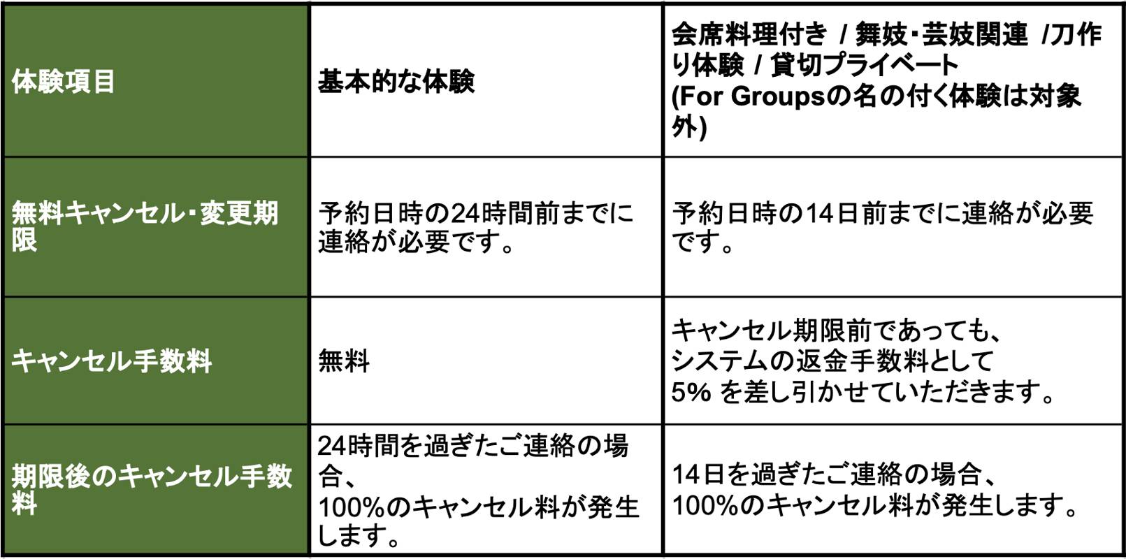 2. 団体向け体験 (For Groupsの名の付く体験が対象) のポリシー