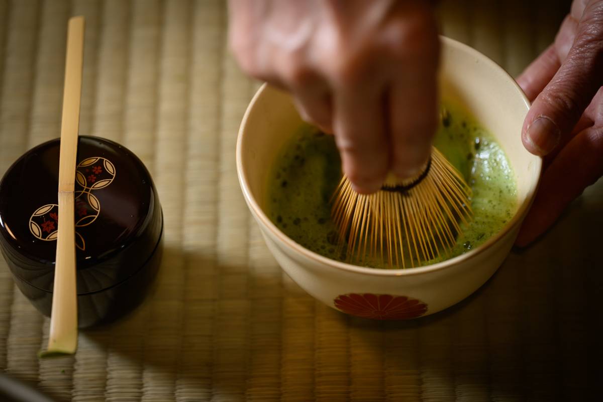 Tea ceremony tools and utensils are taken great care of, with the host wiping them gently with a silk cloth to make sure they are clean. Some of the items used in the ancient tradition are important artifacts that have been used for generations. After preparing the items, the host will carefully measure the matcha powder and hot water, demonstrating the step before teaching you the mesmerizing process of whipping the matcha until it creates a thick foam.