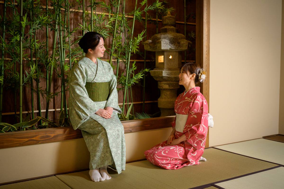 You can take many photos by wearing an authentic kimono in the beautiful Japanese gardens of Maikoya. You can even wear your kimonos outside after your tea ceremony.