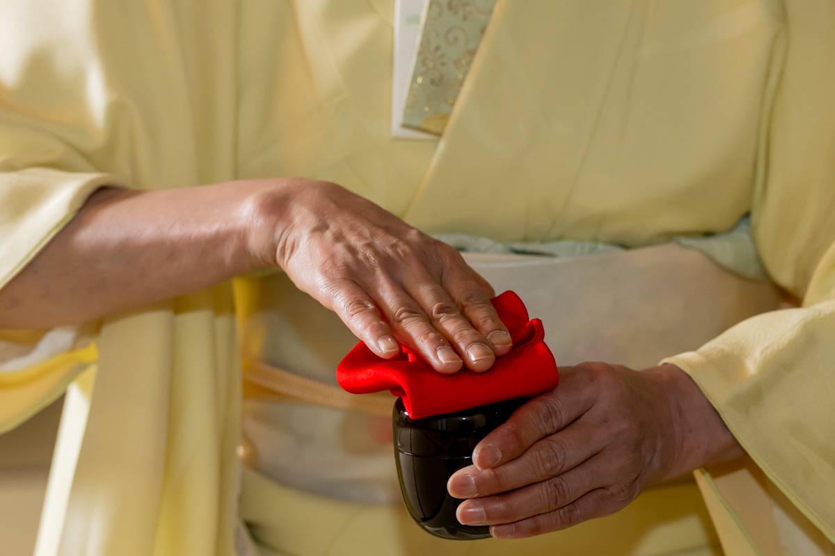 Tea ceremony tools and utensils are taken great care of, with the host wiping them gently with a silk cloth to make sure they are clean. Some of the items used in the ancient tradition are important artifacts that have been used for generations. After preparing the items, the host will carefully measure the matcha powder and hot water, demonstrating the step before teaching you the mesmerizing process of whipping the matcha until it creates a thick foam.